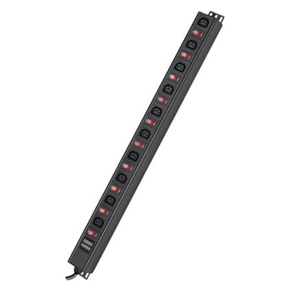 Блоки распределения электропитания ДКС (БРП или PDU) предназначены для обеспечения электропитания активных потребителей, размещенных в IT-корпусах. Предназначен для вертикального монтажа. Имеет 10 разъемов IEC C13 и двухметровый кабель с разъемом IEC C14. Имеет индикатор тока.