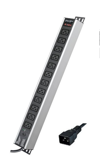 Блоки распределения электропитания ДКС (БРП или PDU) предназначены для обеспечения электропитания активных потребителей, размещенных в IT-корпусах. Предназначен для вертикального монтажа. Имеет 12 разъемов IEC C19 и двухметровый кабель с разъемом IEC C20. Имеет индикатор тока.