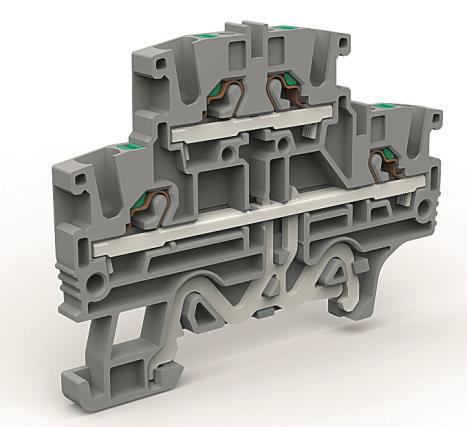 Двухуровневая клемма 2,5 кв.мм с заземлением в нижнем ярусе