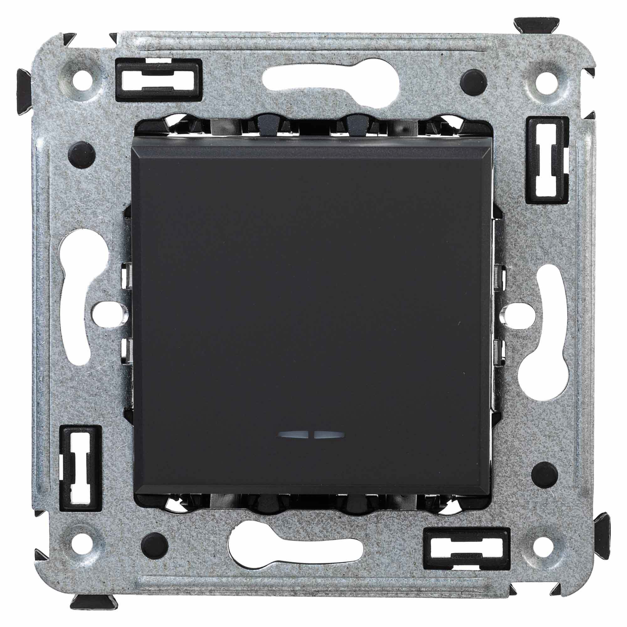 Инвертор однополюсный для монтажа в стену. Предназначен для монтажа в подрозеточные коробки (код 59301). Используется для включения/выключения освещения с трех и более мест. Диаметр отверстий для ввода кабелей – 3 мм (по 2 отверстия на одну клемму); винтовые зажимы; фиксация в подрозеточную коробку при помощи саморезов. Шаблон для зачистки кабеля – 11 мм. Номинальный ток – 16 A. Номинальное напряжение – 230 В. 2 модуля. Цвет: "Черный матовый".