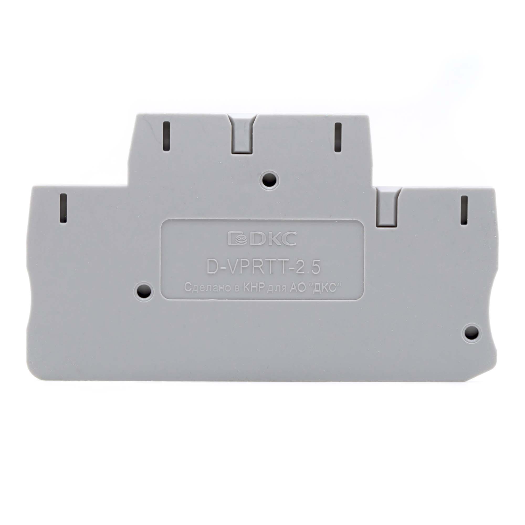 Изолятор торцевой предназначен для защиты и закрытия токоведущие части клеммы. Фиксируется на двухуровневых клеммах с Push-in зажимом VPRTT-2.5. Устанавливается в конце клеммного ряда и также может использоваться для визуального разделения сегментов клеммного ряда. Серый цвет, толщина 2,2 мм.