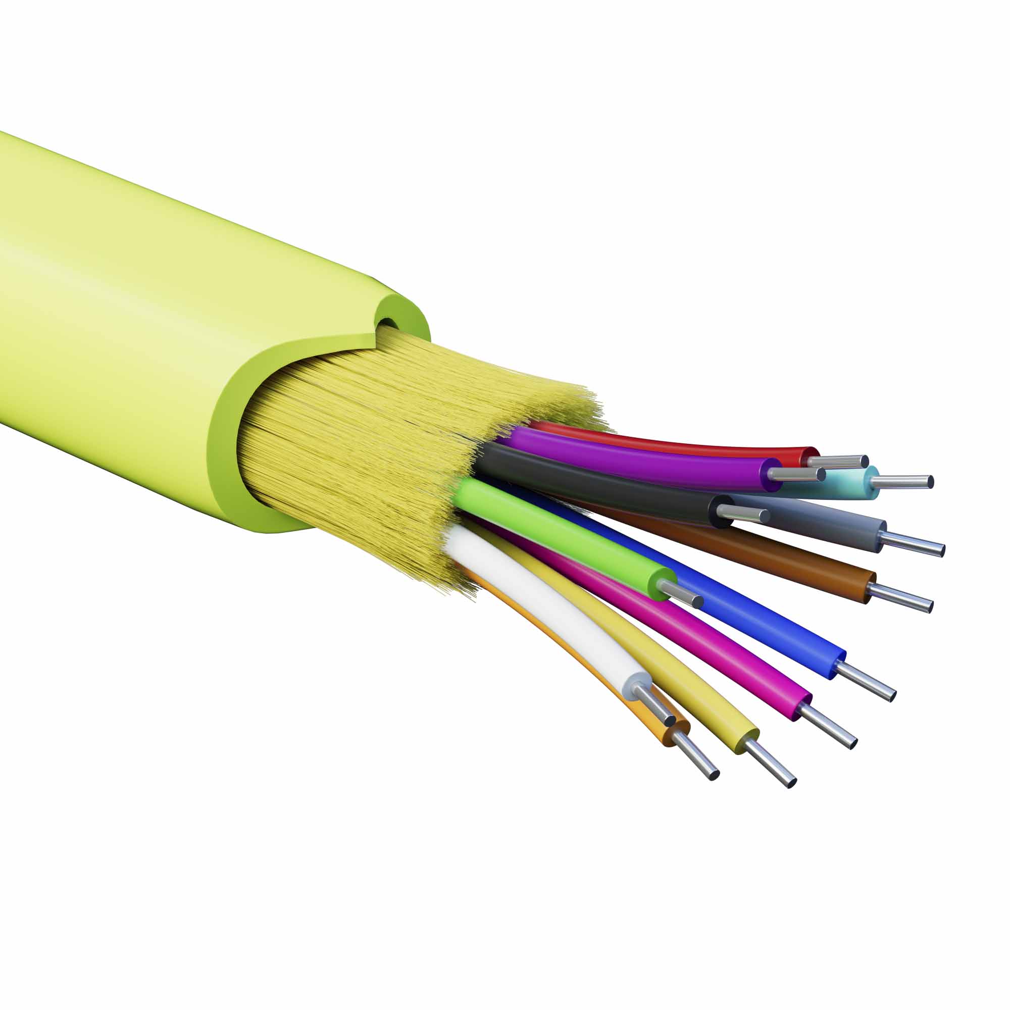 Кабель волоконно-оптический, распределительный, арамидные упрочняющие нити, для внутренней прокладки, нг(А)-HF, 12 ОВ, категория OM5 (G.651.1) плотный буфер, 0,4 кН, барабан 2000 м DKC — Купить в Казахстане | Ac Group