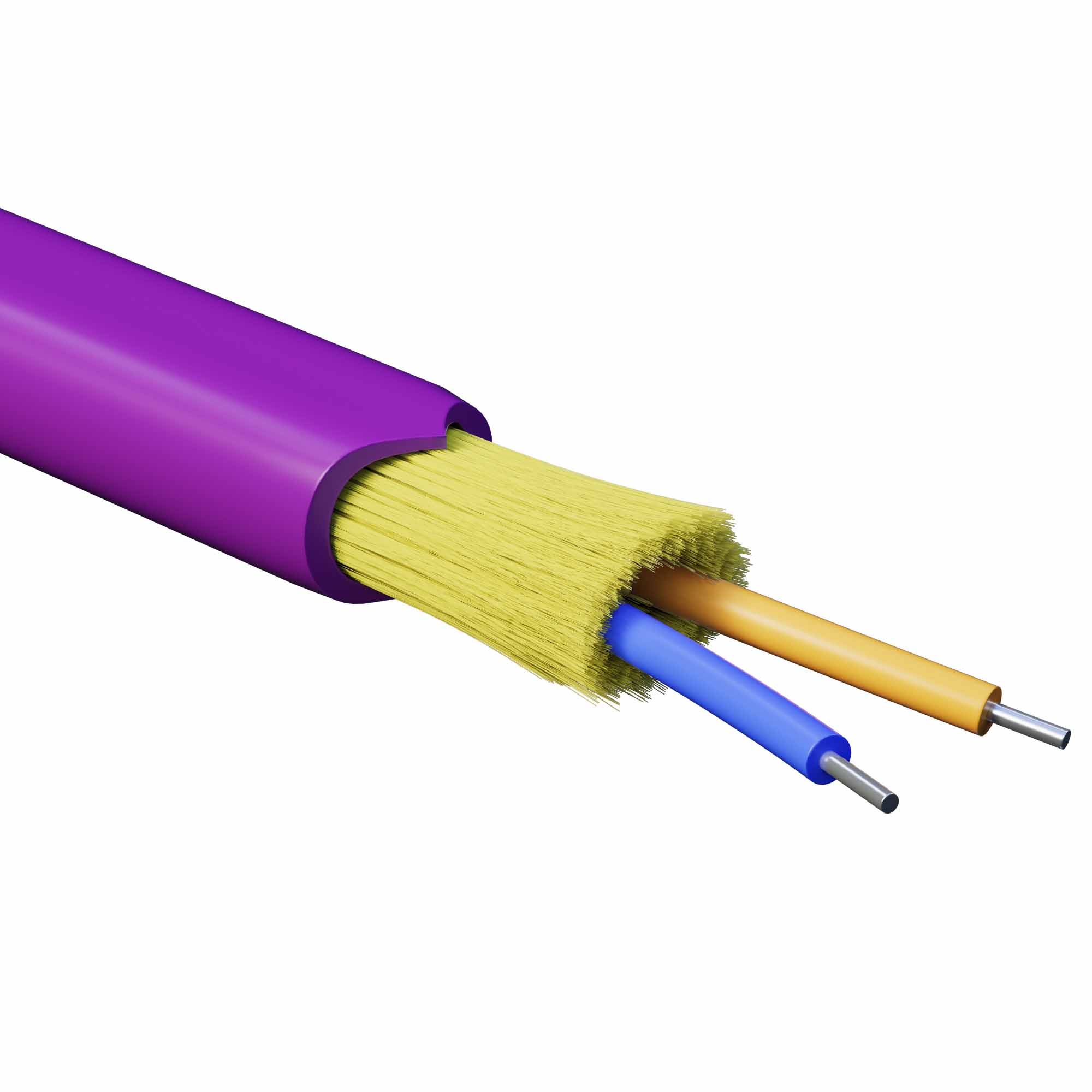 Кабель волоконно-оптический, распределительный, арамидные упрочняющие нити, для внутренней прокладки, нг(А)-HF, 2 ОВ, категория OM4 (G.651.1) плотный буфер, 0,4 кН, барабан 500 м DKC — Купить в Казахстане | Ac Group