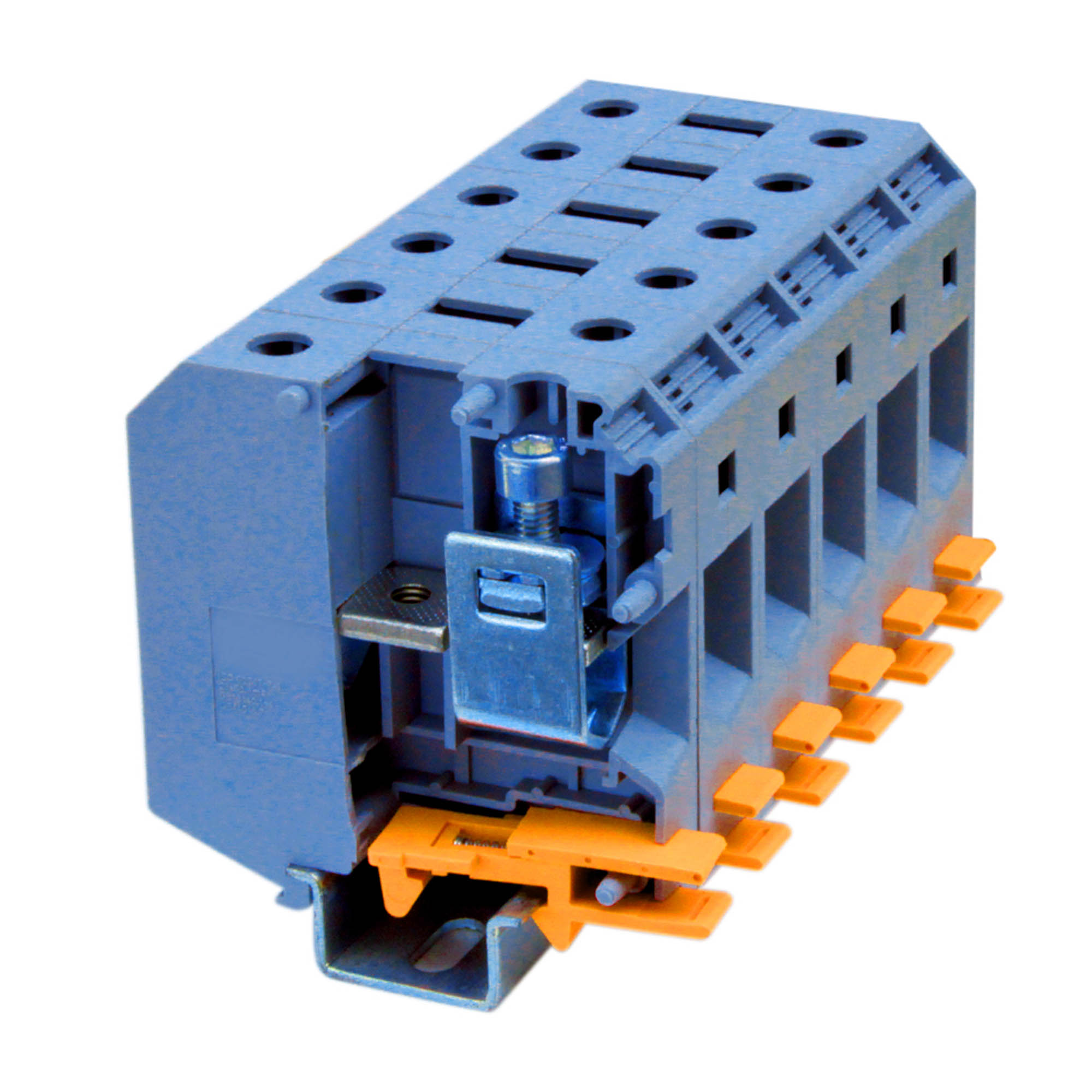 Синий цвет, 2 точки подключения, 240 мм². 1 канал винтовых перемычек. Габариты (В×Ш×Г) 118,5×100×36 мм.