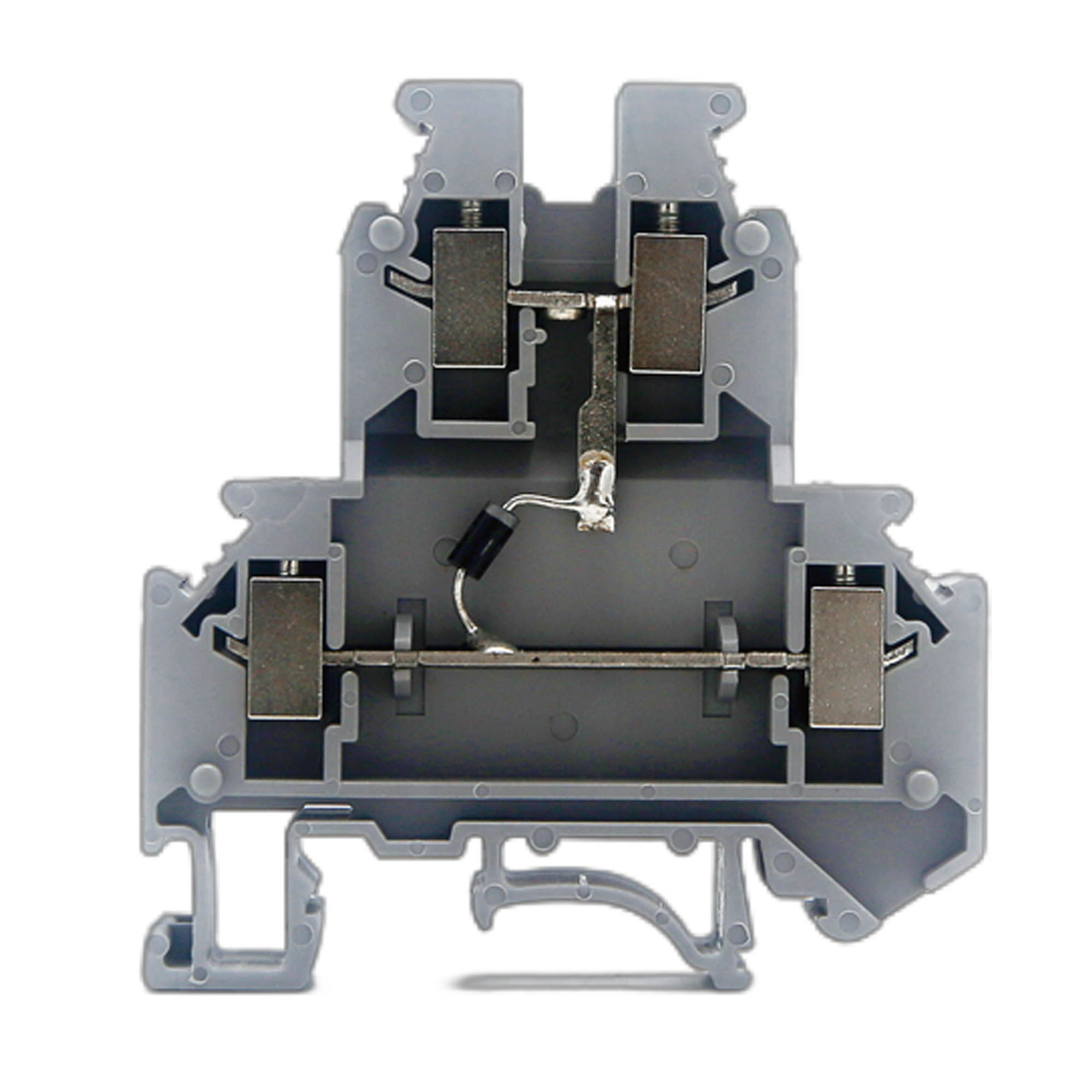 Клемма со встроенным диодом, двухуровневая, один диод между верхним инижним уровнем, катод соединен с верхним уровнем, винтовой зажим, 4точки подключения, 4 кв.мм, серая DKC — Купить в Казахстане | Ac Group