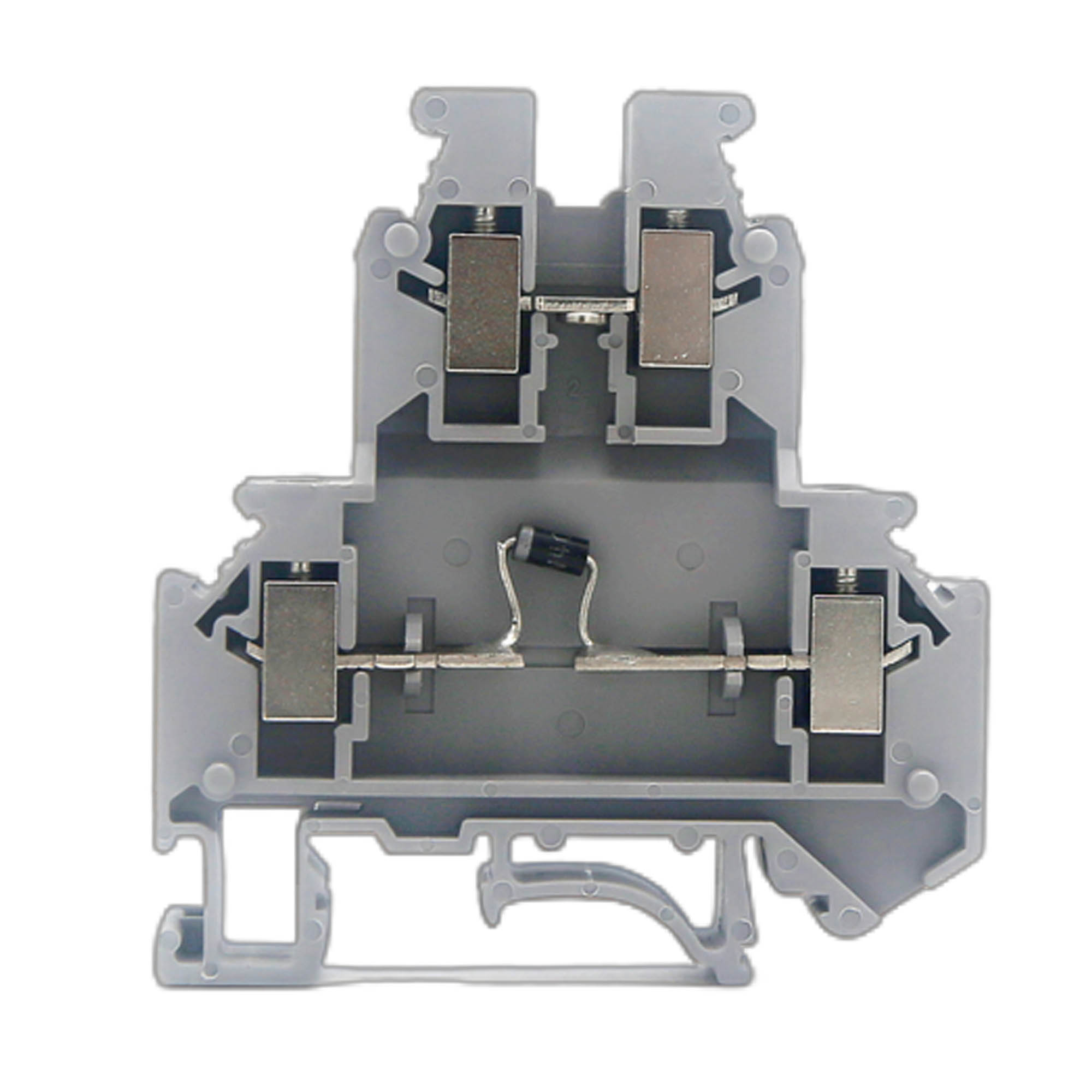 Клемма со встроенным диодом, двухуровневая, один диод между выводаминижнего уровня, катод соединен с правым выводом, винтовой зажим, 4 точкиподключения, 4 кв.мм, серая DKC — Купить в Казахстане | Ac Group