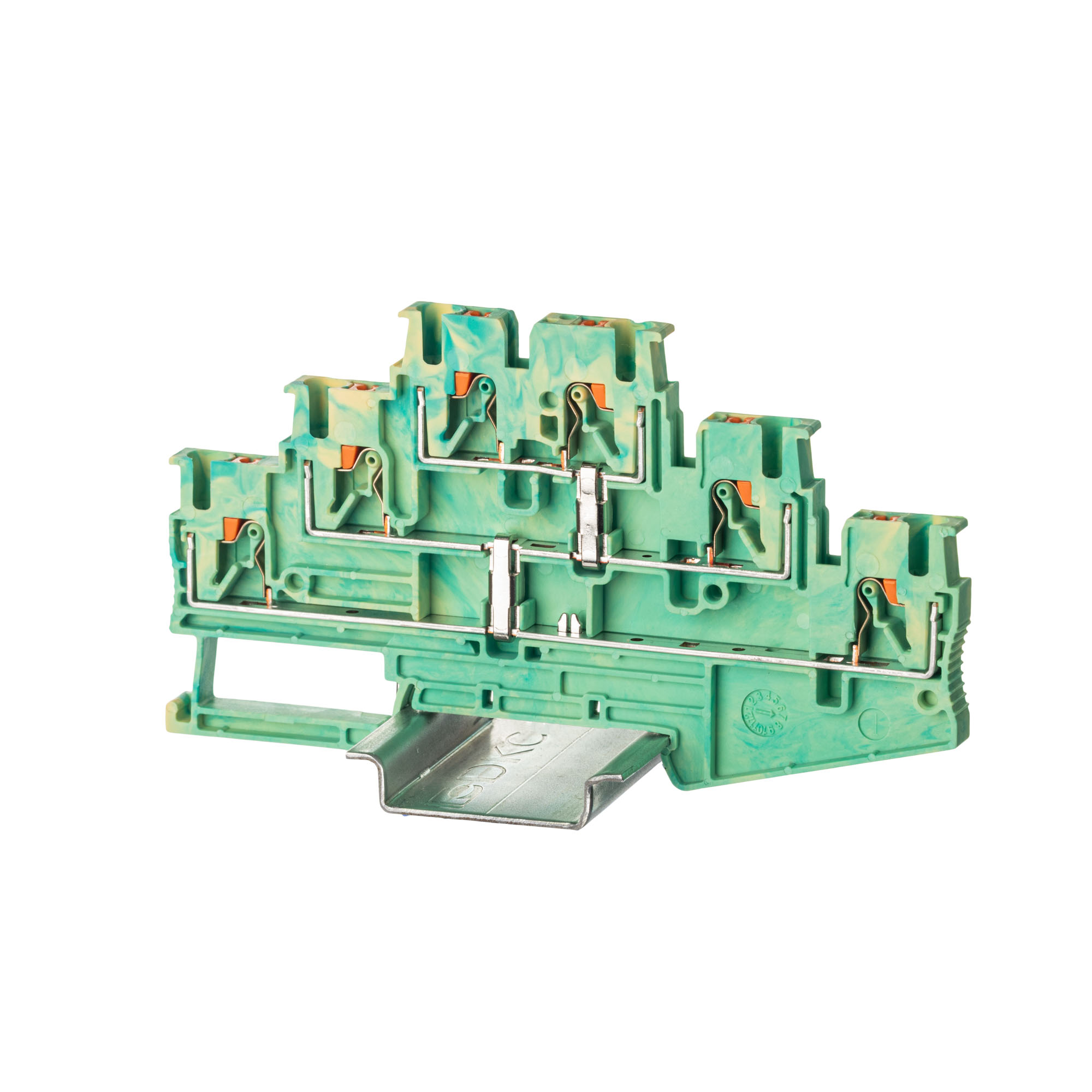 Клемма для заземления трехуровневая с Push-in зажимом, за счет кнопки-толкателя обеспечивается защита от ошибок при монтаже и случайного прикосновения. Клемма имеет электрический контакт с DIN-рейкой. Монтаж осуществляется на DIN-рейку OMEGA. Температура эксплуатации от -40 до +105оС. Корпус выполнен из ПА 6.6 с классом горючести V0 UL-94.