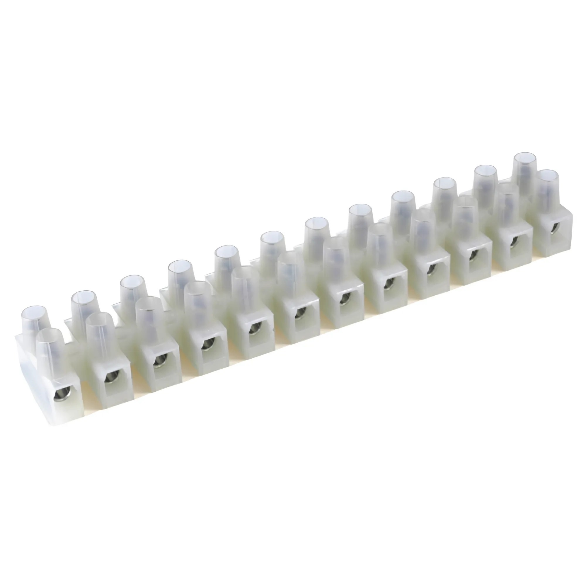 Номинальное напряжение винтового зажима – 450 В, номинальный ток - 101 А, количество полюсов - 12, рабочая температура – 110 °C, поперечное сечение подключенного многопроволочного провода – 25 мм. Материал корпуса – полиамид.