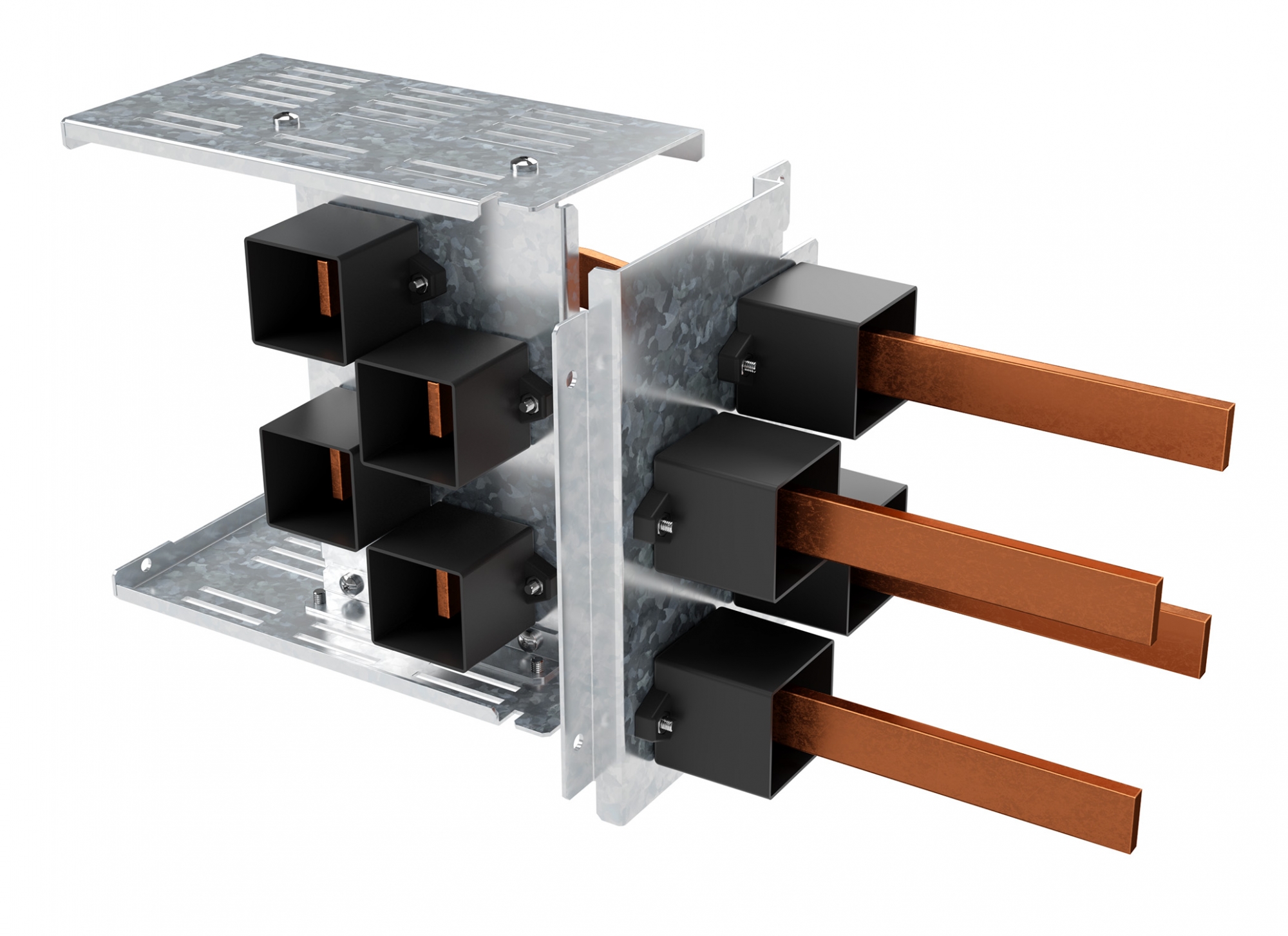 Комплект 3-полюсного секционирования 3б для вывода шин на номинал до 630 А в кабельный шкаф одностороннего обслуживания, шины включены в комплект поставки. Комплект не содержит болтовых соединений и не требует обслуживания в процессе эксплуатации. В случае необходимости комплект шин из смонтированного комплекта можно извлечь через кабельный шкаф.