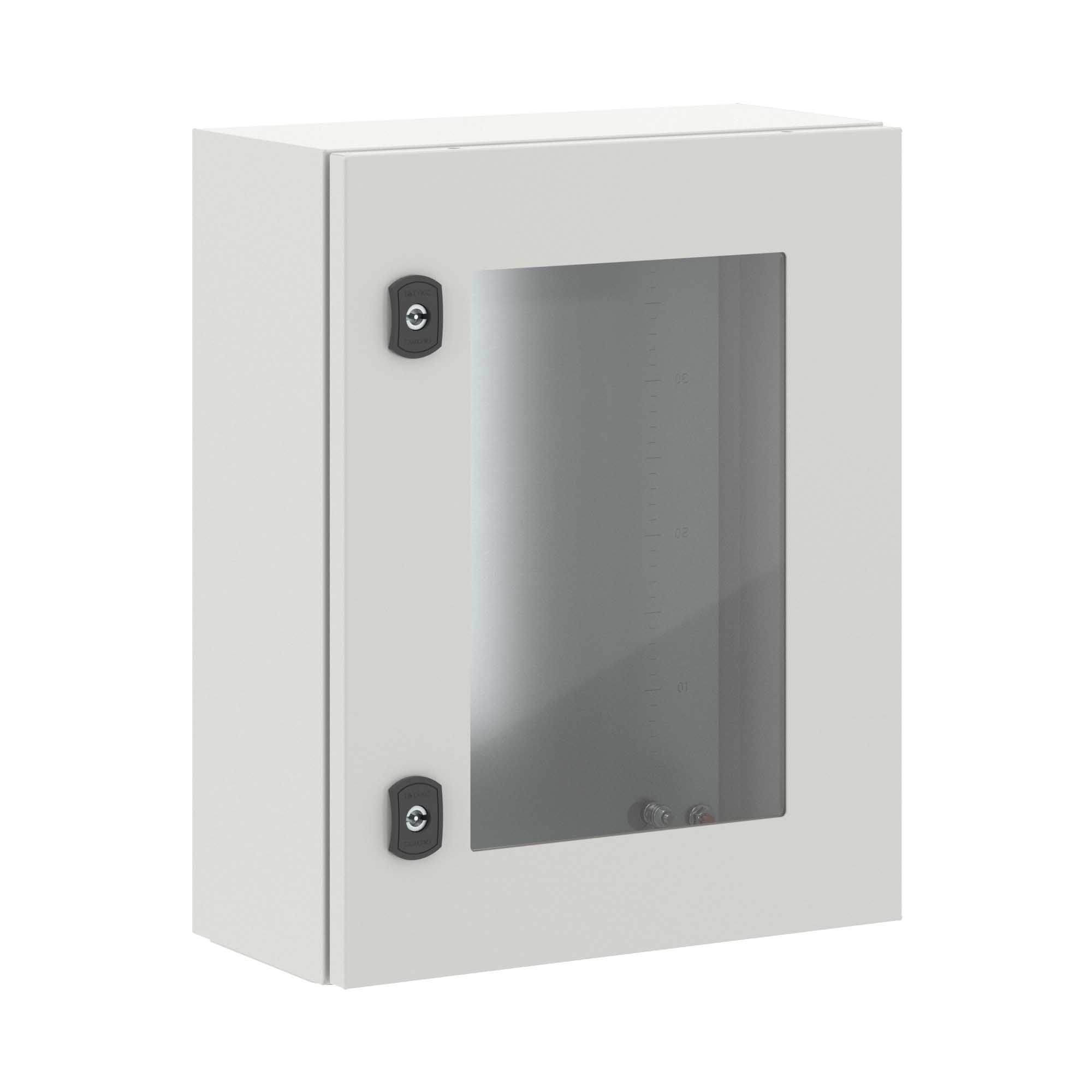 Навесные корпуса STEX предназначены для систем автоматизации и распределения электроэнергии. Корпус, дверь, фланец STEX изготавливаются из стали толщиной 1,5 мм с атмосферостойким порошковым покрытием, цвет RAL7035. Монтажная плата - из оцинкованной стали 1,8 мм. Безопасное закаленное стекло толщиной 5 мм. Корпуса выполнены по технологии сварки из единого листа металла, что обеспечивает высокую нагрузочную способность и защиту от вибраций. Степень защиты IP66, ударопрочность IK10, сейсмостойкость 9 баллов по шкале MSK-64, климатическое исполнение УХЛ1, ОМ2, ОМ3, группа горючести Г1. Комплект поставки: корпус, дверь реверсивная, монтажная плата, дверные рейки, поворотный замок 2 шт., сплошной фланец для ввода кабеля 1 шт., комплект заземления с проводами заземления. Габариты 500x400x200 (ШхВхГ) мм.