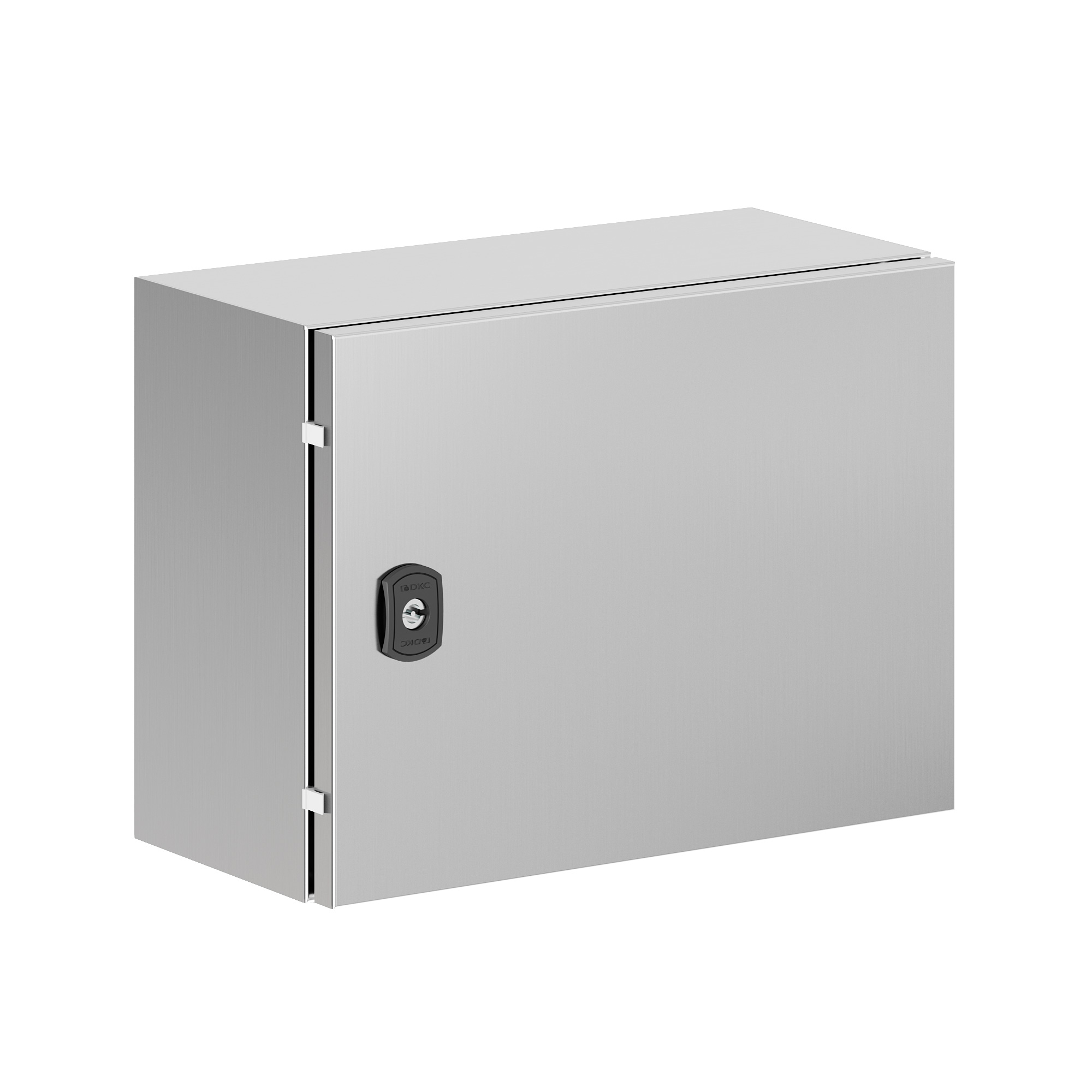Навесные корпуса STH предназначены для систем автоматизации и распределения электроэнергии, эксплуатирующихся в коррозионно-активных средах - области с высокой влажностью, соляной и морской туман, химически агрессивные среды, открытые пространства с высокой концентрацией загрязняющих веществ. Корпус, дверь, фланец изготавливаются из нержавеющей стали AISI 316 (1.4401) толщиной 1,5 мм. Литой уплотнитель двери и фланца - вспененный силикон. Монтажная плата - из оцинкованной стали толщиной 1,8 мм. Степень защиты IP66, ударопрочность IK10, сейсмостойкость 9 баллов по шкале MSK-64, климатическое исполнение УХЛ1, ОМ2, ОМ3, группа горючести НГ. Комплект поставки: корпус, дверь реверсивная, монтажная плата, поворотный замок 1 шт., сплошной фланец для ввода кабеля 1 шт., комплект заземления без проводов. Габариты 300x400x200 (ВхШхГ) мм.