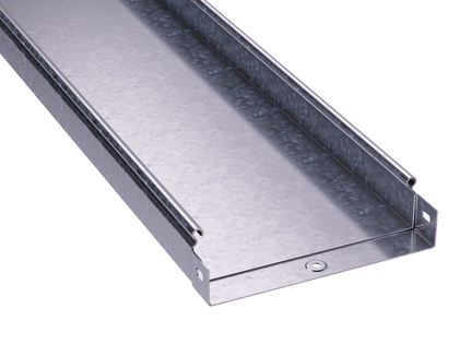 Неперфорированные лотки надежно защищают кабель от повреждений, а при использовании их вместе со специальными уплотнителями и крышками - предотвращают попадание мусора и жидкости в кабельный лоток. Степень пыле- и влагозащиты в этом случае составляет IP 44. Лоток имеет высоту стенки 50 мм и ширину 300 мм, толщина стали - 1,5 мм, длина секции - 3000 мм.