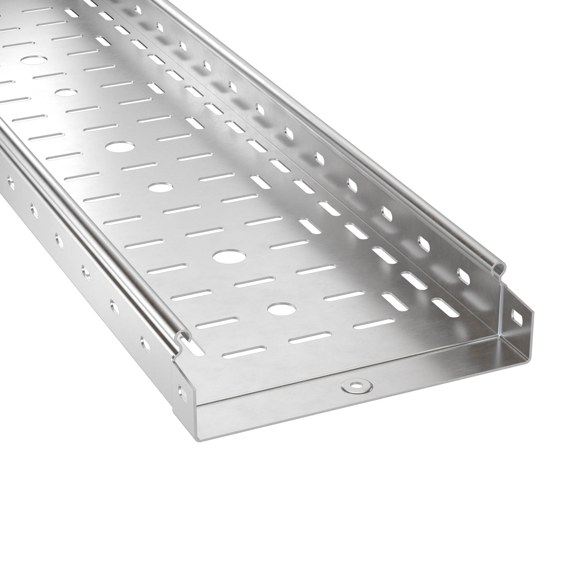 Листовой перфорированный лоток алюминиевого сплава применяется при прокладке кабеля на объектах с повышенным воздействием агрессивных сред (химическая промышленность, морская отрасль, пищевая промышленность и тд.). Использование алюминиевых лотков позволяет значительно снизить общий вес кабельной трассы, не теряя при этом в несущей способности. Высота борта лотка - 50 мм, ширина основания - 500 мм, длина - 3 м. Толщина металла - 2,0 мм.