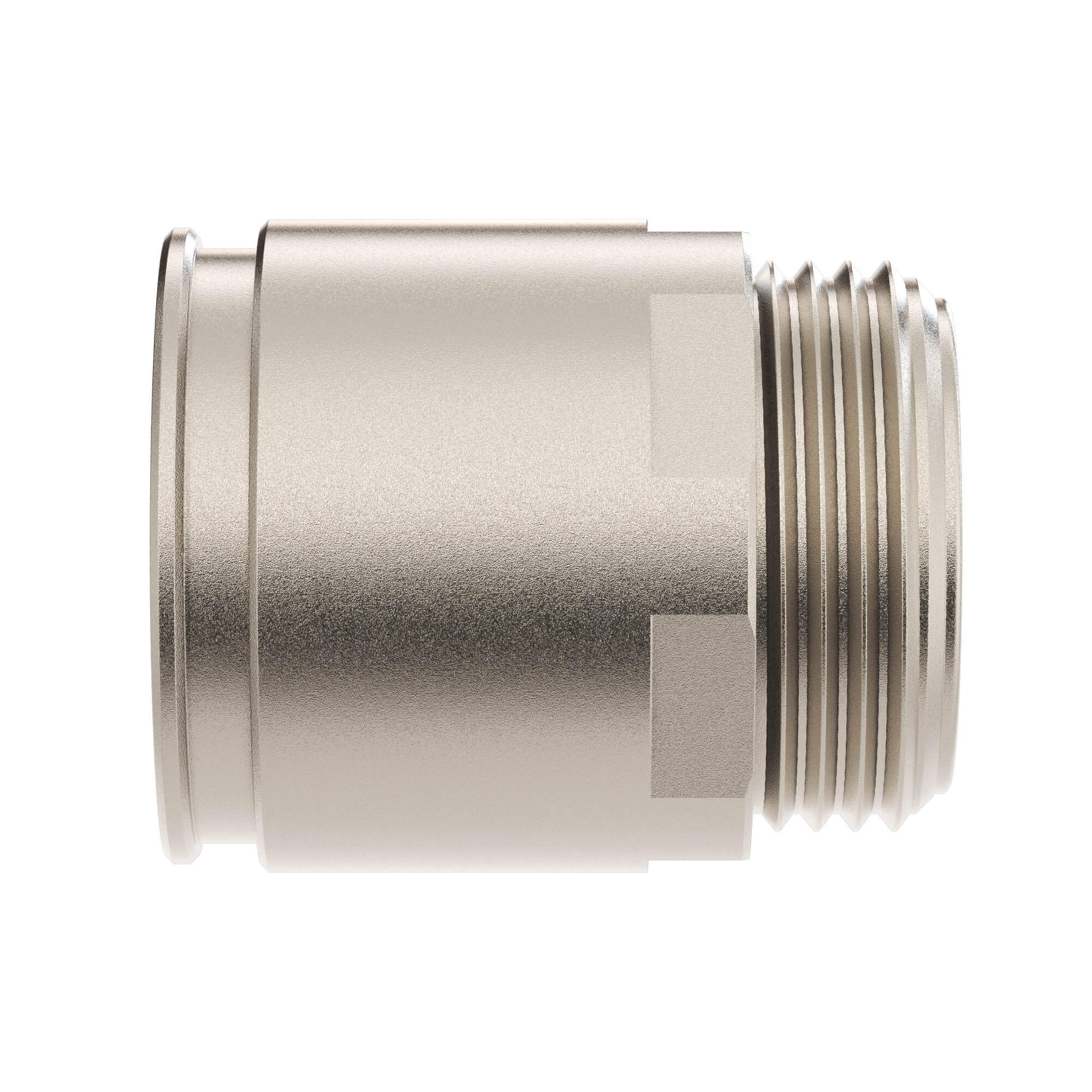 Муфта используется для соединения жесткой металлической трубы с коробкой. Она обеспечивает высокую степень герметизации - IP 66-67. Материал аксессуара - никелированная латунь, - имеет высокую устойчивость к коррозии. Муфта совместима с трубами диаметром 32 мм.