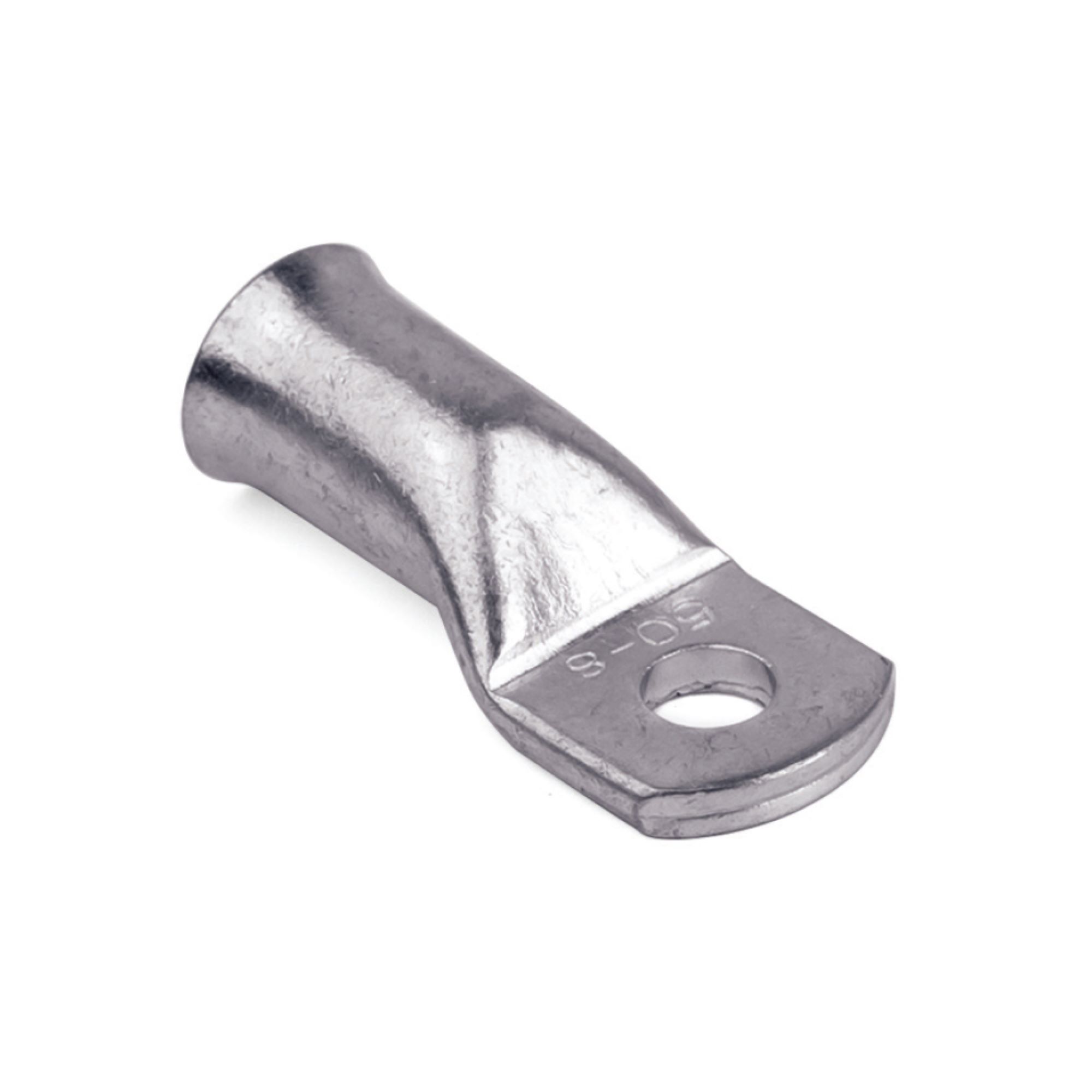 Неизолированный наконечник c развальцованной монтажной гильзой (ТМЛ-Г) предназначен для оконцевания предварительно зачищенных от изоляции медных или алюминиевых проводов и их присоединения к медным клеммам, шинам, зажимам. Материал контактной части – медь М1. Луженое покрытие внешних и внутренних поверхностей с использованием висмута защищает от коррозии и увеличивает проводимость защитного слоя. Особенностями наконечника являются развальцованная на 15% гильза, увеличенный на 8% внутренний диаметр гильзы, возможность подключать кабель с высокой степенью гибкости 6 категории. Наконечник используется для крепления контактной площадки с помощью метиза М10. Сечение проводника – 35 мм².