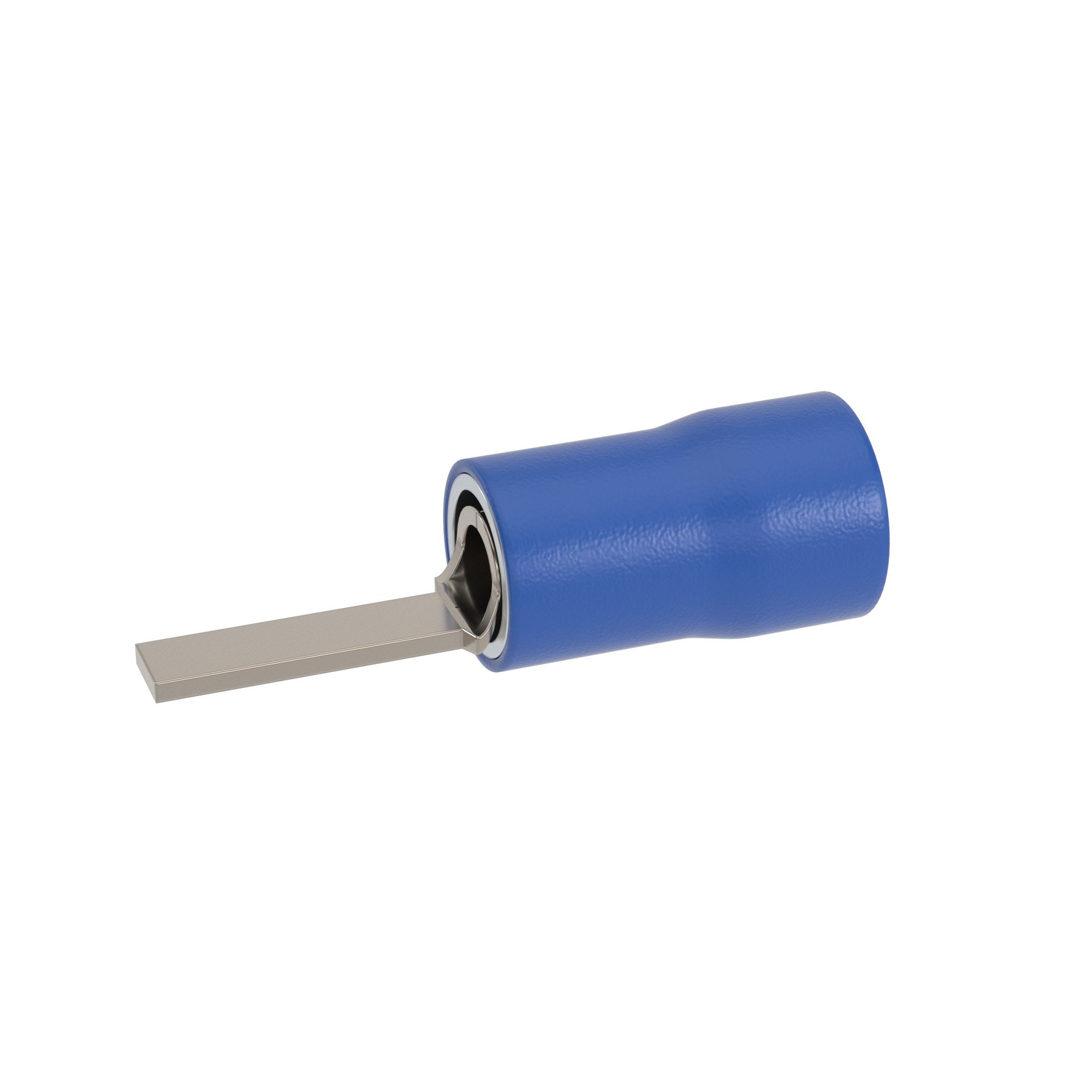 Предназначен для оконцевания медных/алюминиевых многопроволочных жил кабелей/проводов в электрических цепях переменного/постоянного тока напряжением до 600 В. Контактная часть выполнена из высококачественной меди марки М1. Лужение исключает образование гальванической пары. Внутренняя часть гильзы имеет радиальные насечки, повышающие плотность контакта. Изоляция из ПВХ выдерживает температуру до 85 ⁰C. Класс горючести - V0, стандарт UL 94. Двойная гильза обеспечивает наилучший электрический контакт и повышает виброустойчивость соединения. Рекомендованы для регионов с повышенной сейсмической активностью и на производственных объектах. Цвет - синий. Сечение: 1,5-2,5 мм2. Длина контактной части 13 мм. Ширина контактной части - 2,4 мм. Форма контактной части - лопатка.
