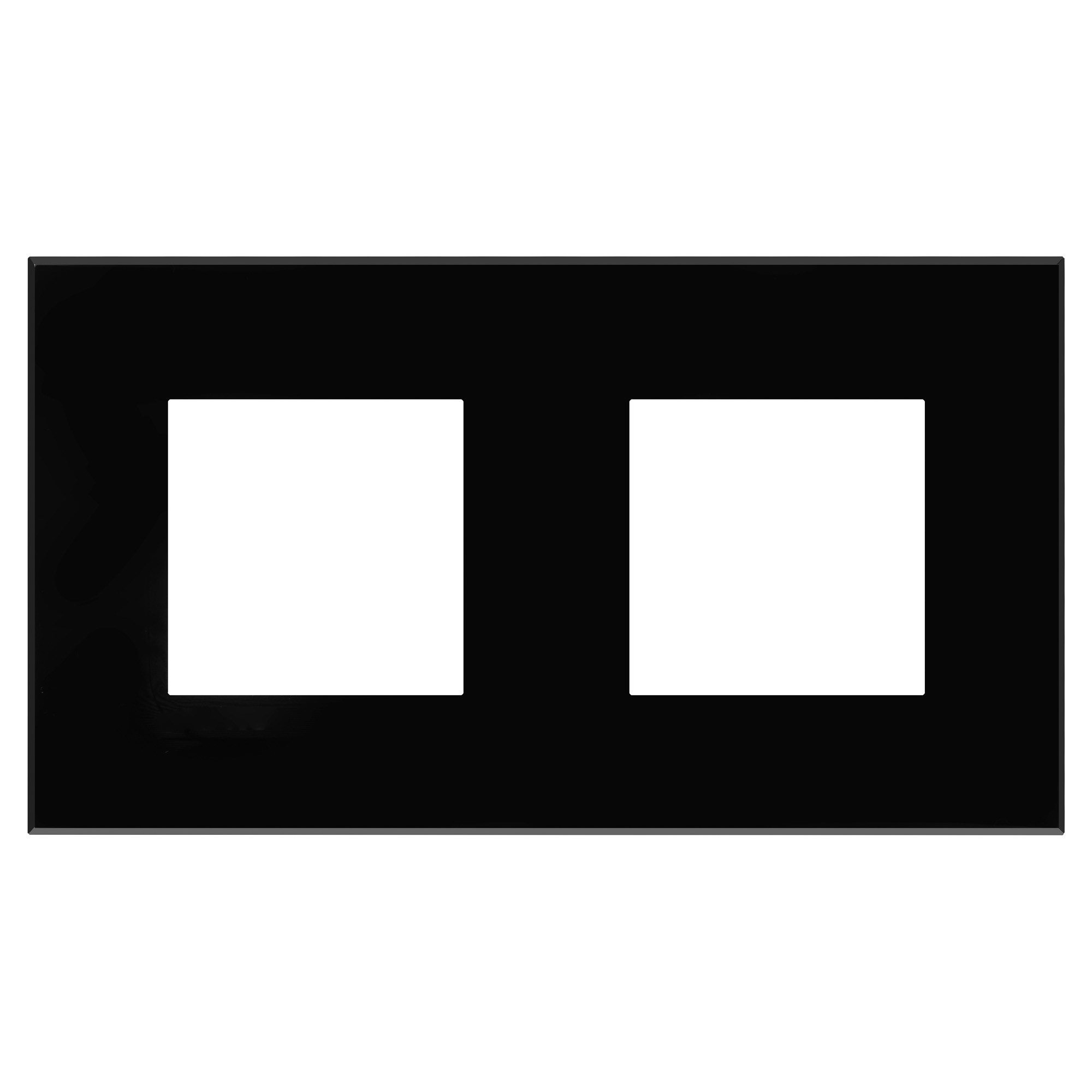 Рамка имеет 2 места под электроустановочные изделия (максимальная вместимость – 4 модуля), может размещаться как горизонтально, так и вертикально. Габаритные размеры: 160х90 мм. Материал – термопласт.