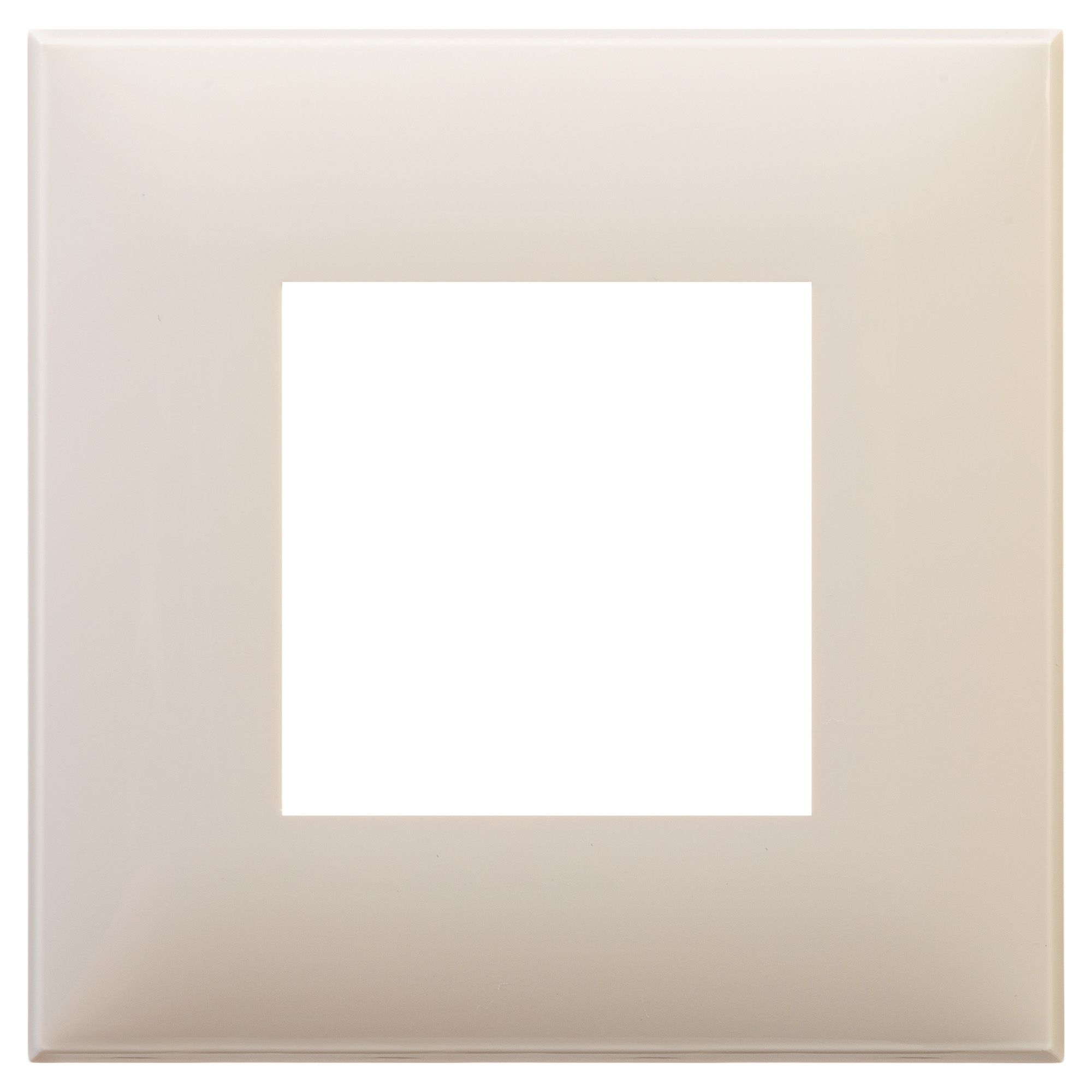 Рамка рассчитана на установку одного изделия (максимум 2 модуля). Допустимо размещать рамку как горизонтально, так и вертикально. Габаритные размеры: 90х90 мм. Материал – термопласт.