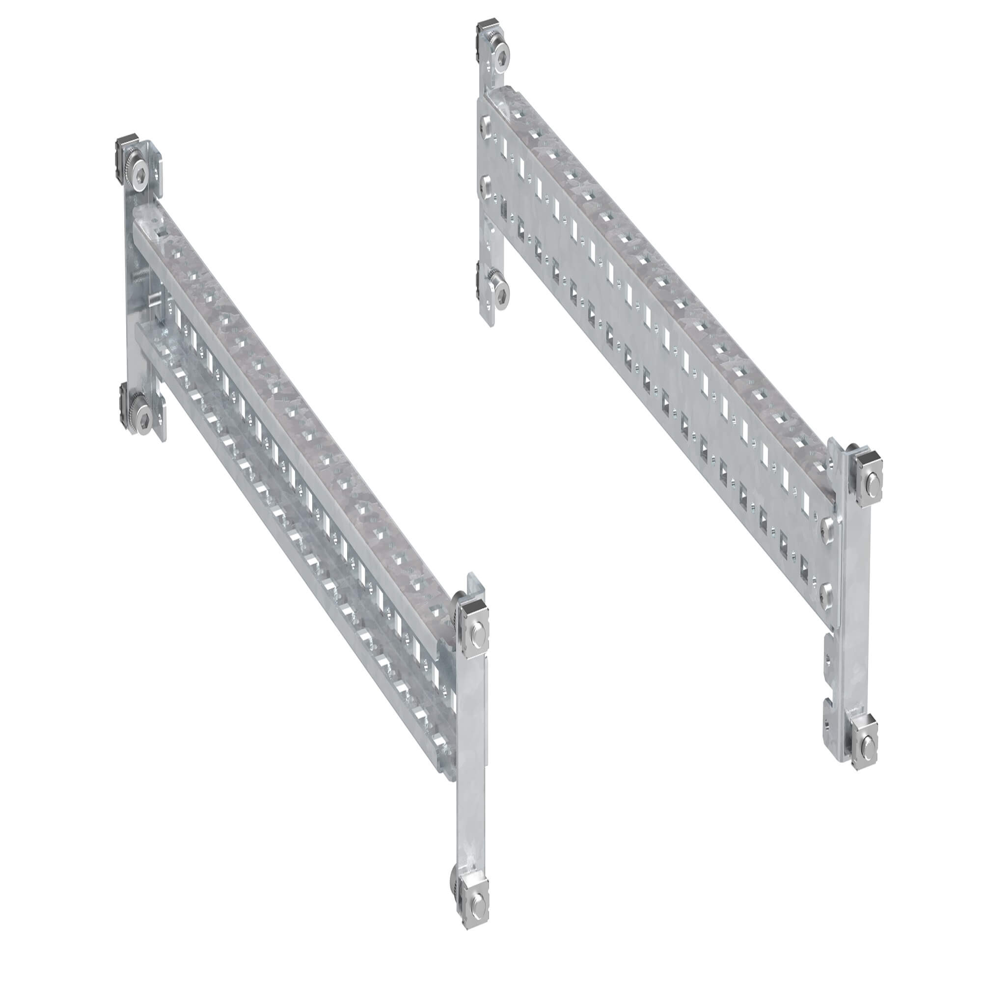 Рейки боковые усиленные предназначены для организации тяжёлых шинных трасс и другого тяжёлого оборудования. Имеют две монтажные перфорированные плоскости. Монтаж осуществляется по глубине шкафа. Подходят для шкафа глубиной 1000 мм.