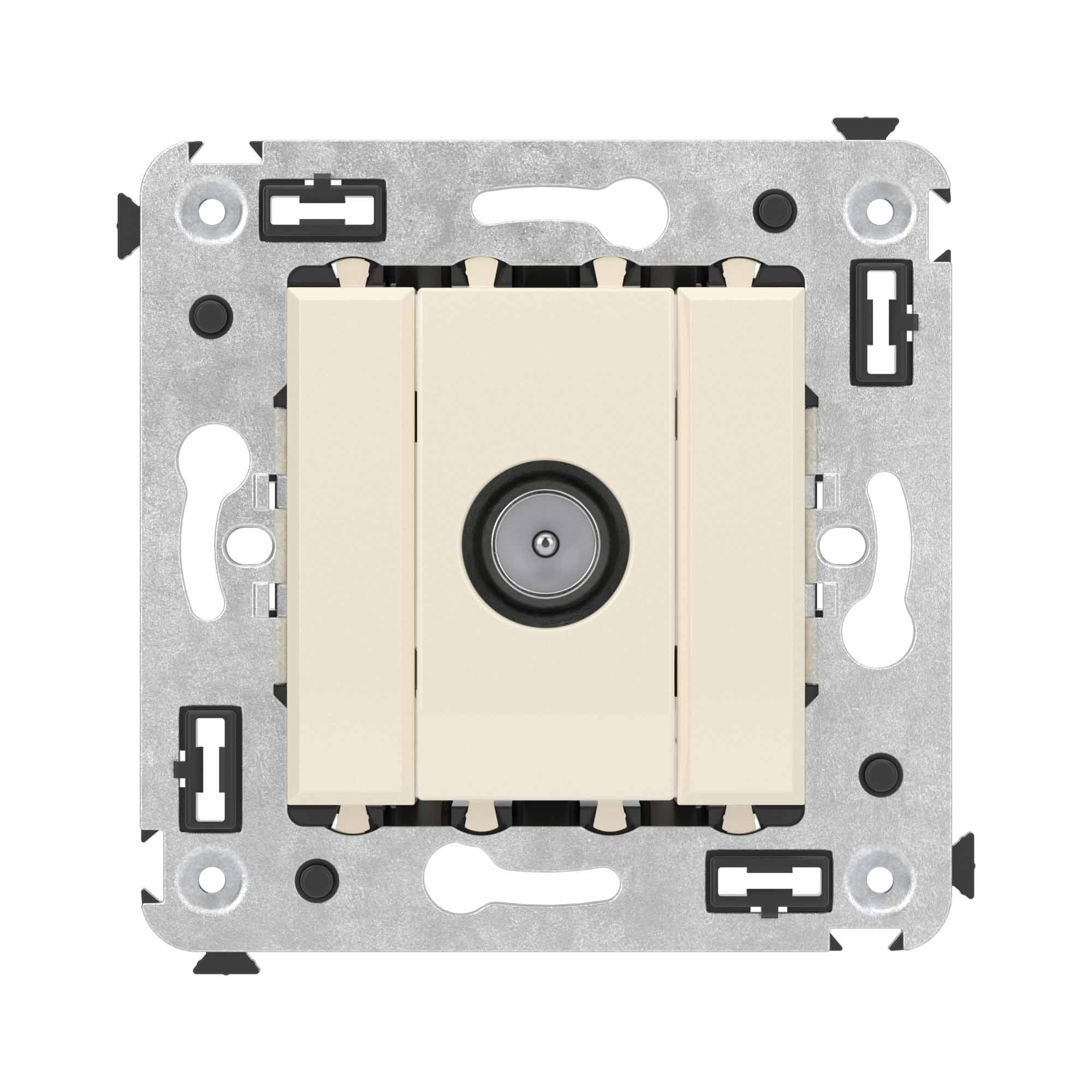 Оконечные телевизионные розетки предназначены для скрытой установки в стенах, поставляются в комплекте с суппортом. Применяются для подключения телевизионного кабеля. TV-розетки производства ДКС рассчитаны на частоту до 2400 Гц. Материал – металл, пластик. 2 модуля. Пластиковые детали имеют цвет "Ванильная дымка".