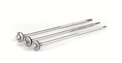 Самосверлящий самонарезающийся винт с шайбой используется для крепления к сэндвич-панелям несущих конструкций и молниеотводных полос. Длина винта - 155 мм.