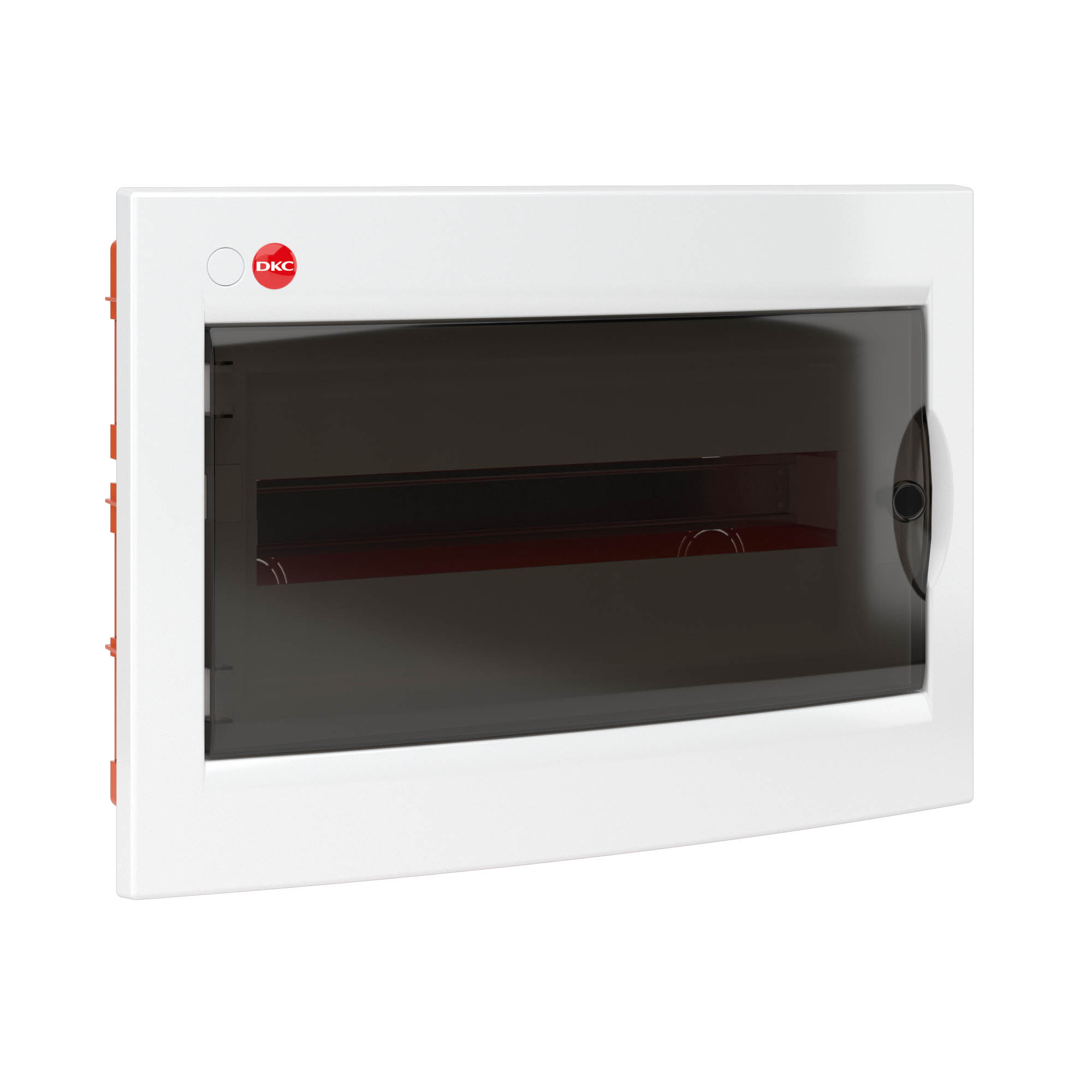 Встраиваемый распределительный щиток ДКС предназначен для монтажа в жилых и административных помещениях для установки автоматических выключателей любых производителей: таймеров, устройств защитного отключения и управления освещением и т.д. Щиток имеет оцинкованную DIN-рейку и суппорт, заглушки для пустых модулей, сборочные винты и заглушки для них, самоклеящуюся этикетку для маркировки цепей. Преперфорированные отверстия и насечки на задней стенке обеспечивают точное соединение с пластиковыми трубами и обеспечивают легкий монтаж. Усиленный клеммный блок 87318 в комплекте с крепежом, для коммутации питающих линий, жил проводов и кабелей. Дверца выполнена из затемненного полупрозрачного пластика. Специальная конструкция петель дает возможность открывать дверцу более чем на 180°. Степень пыле- и влагозащиты IP 41. Количество модулей - 18. Параметры щитка: ширина - 411 мм, высота - 300 мм, глубина встраиваемой части - 77 мм. Материал - термостойкий и ударопрочный пластик. Цвет - белый.