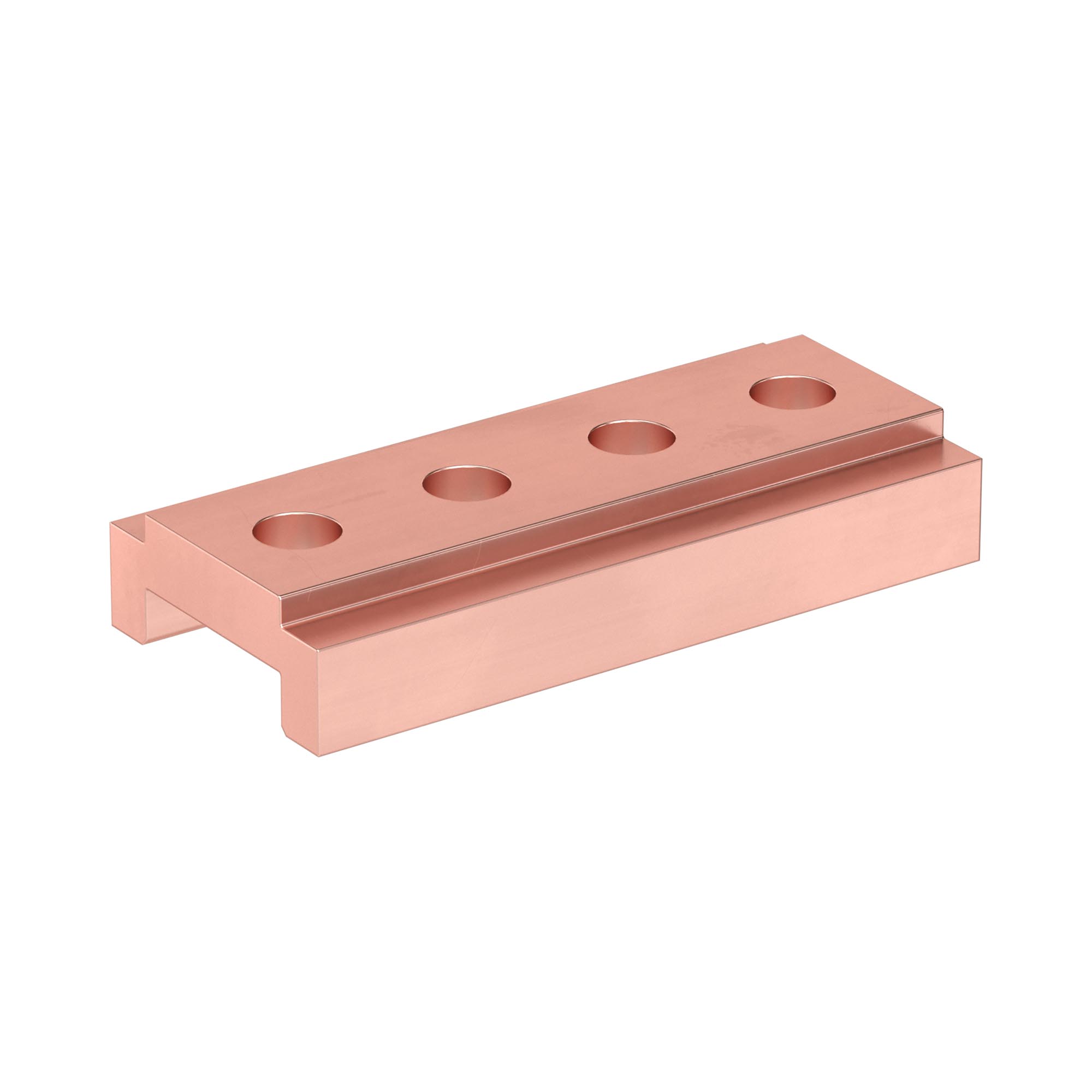 Струбцина медная 100 мм, 2 шины на фазу. Обеспечивает прохождение электрического тока в местах соединения шин. Применяется для соединения сборных шин 2-2 и подключения автоматических выключателей шиной шириной 100 мм