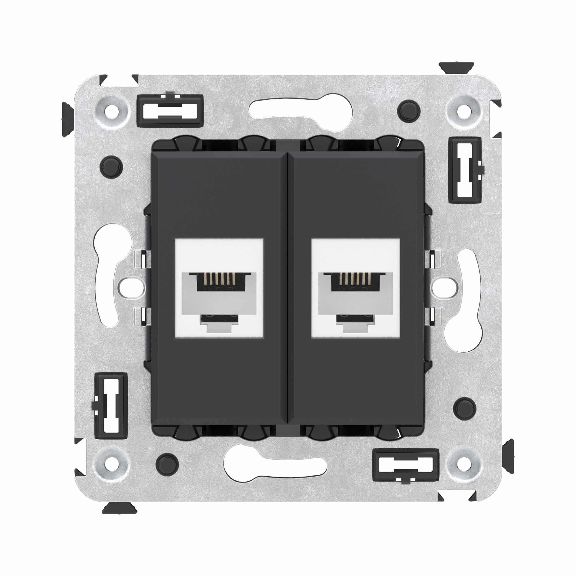 Телефонная розетка RJ-12 двойная без шторки используется для коммутации линий телефонной связи в патч-панелях или для связи телефонных аппаратов с розеткой. Предназначена для скрытого монтажа в стену, поставляется в комплекте с суппортом. Материал – металл, термопласт.