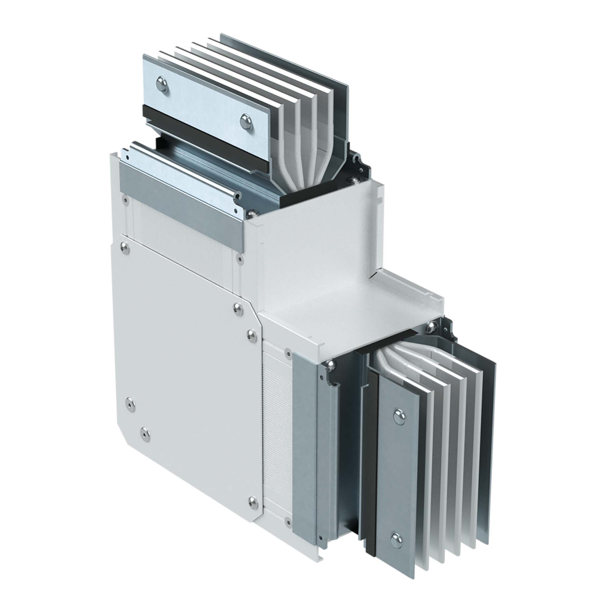 Элемент шинопровода с алюминиевыми проводниками, меняющий направление трассы в вертикальной плоскости.