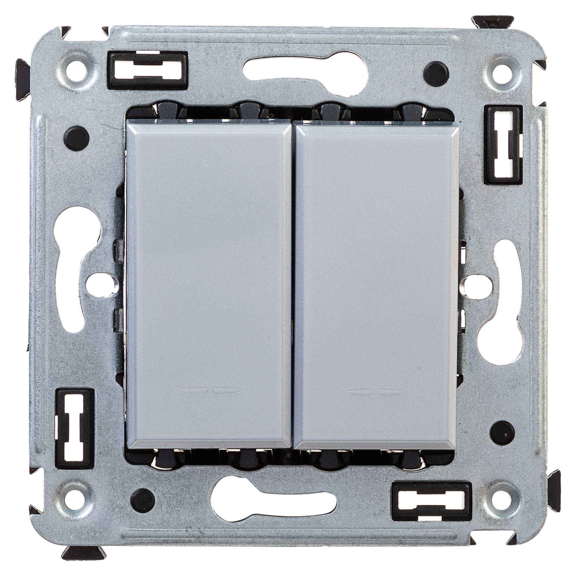 Задача двухклавишного выключателя – управление двумя контурами освещения из одной точки. Выключатели из серии ЭУИ "Avanti" предназначены для скрытого размещения в стене. Номинальное напряжение выключателя – 230 В, номинальный ток – 16 А.