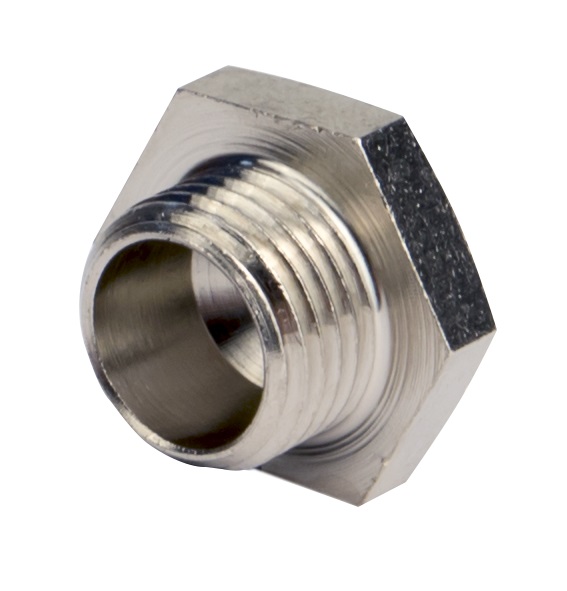 Заглушка используется для закрытия концевых участков труб с метрической резьбой М16х1,5. Если в данный момент труба не используется, заглушка закрывает свободный конец, предотвращая попадание в трубу мусора и обеспечивая эстетичный внешний вид. Материал - никелированная латунь.